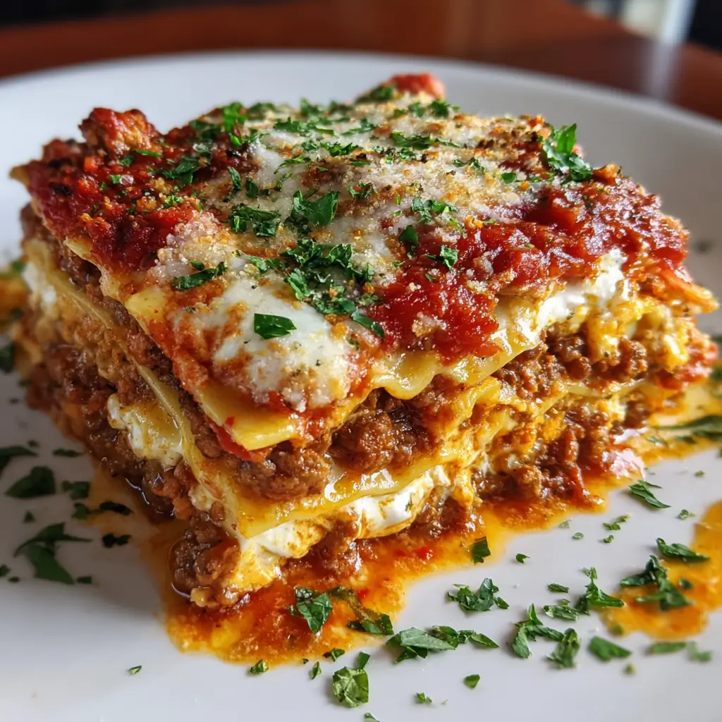 Allow the lasagna to cool for 10 minutes before slicing. Garnish with fresh parsley for a festive touch and serve hot.