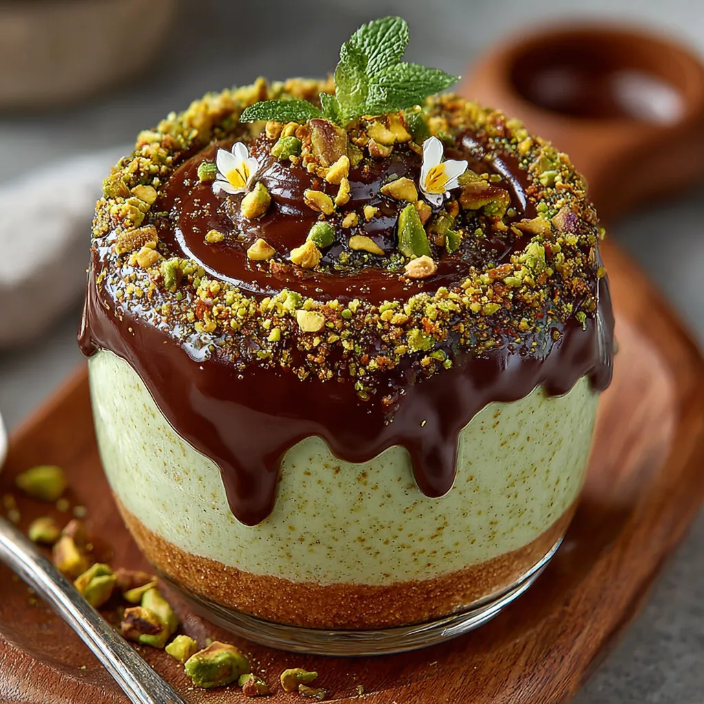 Indulge in Delight: Pistachio Mousse with Chocolate Ganache