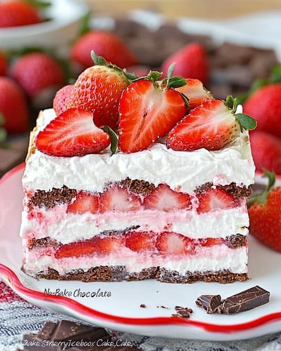 In summary, the No-Bake Chocolate Strawberry Icebox Cake is a quick, delicious dessert that combines rich chocolate and fresh strawberries. With a preparation time of just 90 minutes, it’s perfect for any occasion. Try this recipe today, and don’t forget to share your feedback in the comments section or subscribe for more delicious updates!