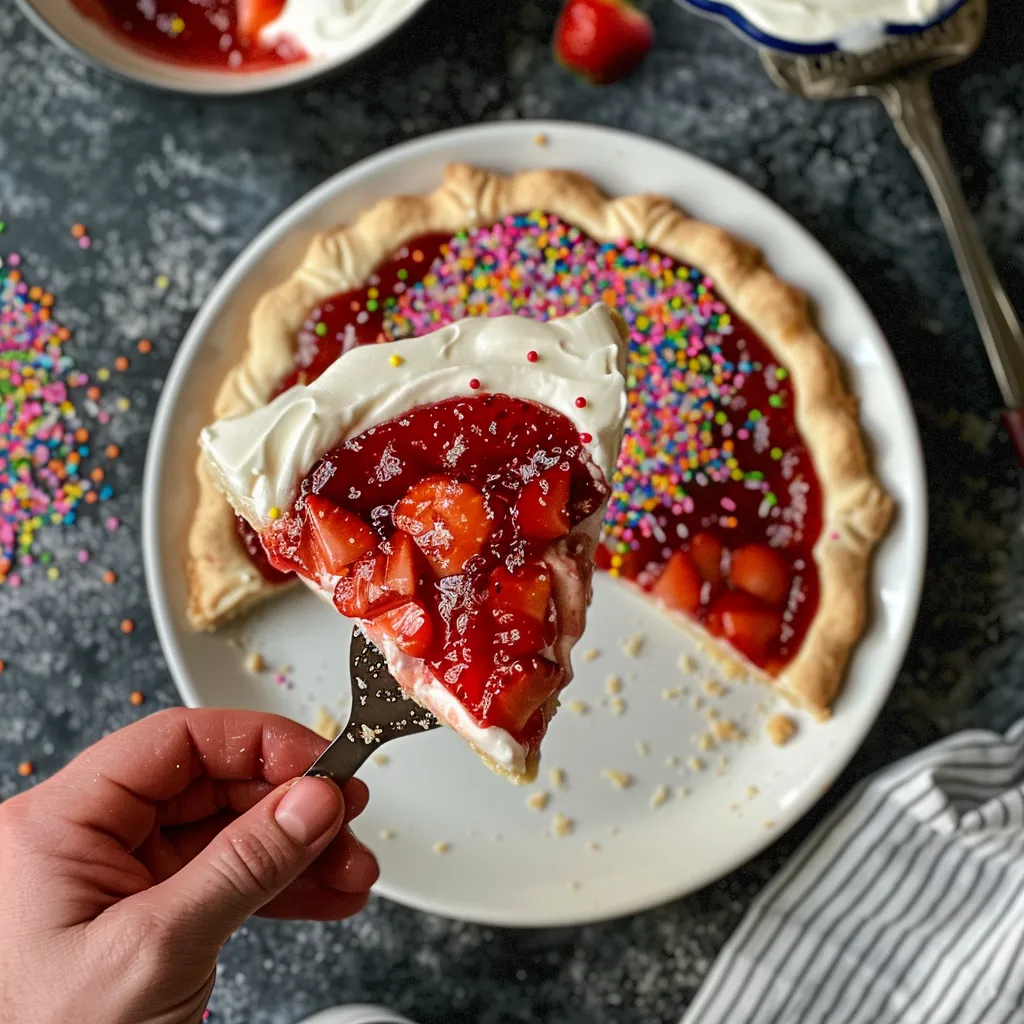 The Strawberry Pop-Tart Pie is a fun and sweet dessert that’s perfect for summer gatherings. With its vibrant filling and delightful glaze, it’s sure to be a hit! Try this recipe, share your feedback in the comments, and don’t forget to subscribe for more delicious updates!